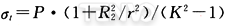 分別計算I—I截面和Ⅱ—Ⅱ截面的徑向應(yīng)力及切向應(yīng)力,計算公式如下: