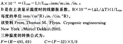@A是凈收縮率系數(shù),也就是說(shuō)A是從基本溫度560°R變化到上表中的任意溫度時(shí)長(zhǎng)度上的變化