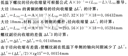 3.3 計(jì)算低溫下軸向收縮對(duì)螺紋副軸向間隙的影響