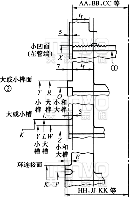 ① 對于小凸面連接,在用這些尺寸時應(yīng)注意確保管子的內(nèi)徑足夠小,以保證有足夠的支承面以防止擠碎。這特別適用于管端連接的管道,對于小凹凸面連接,螺紋配對法蘭帶平整的平面,螺紋為美國標(biāo)準(zhǔn)鎖緊螺母螺紋(NPSL)。