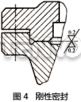 在某些情況下,亦可采用無墊片的剛性密封結(jié)構(gòu)。如圖4所示。此時(shí)需求法蘭密封面有很高的平整度和很低的表面粗糙度Ra為0.2μm。