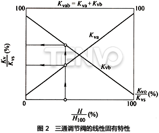 三通調(diào)節(jié)閥的固有特性(圖2)必須這樣:總流量與流路無(wú)關(guān),這在于恰當(dāng)?shù)剡x擇尺寸和固有特性。