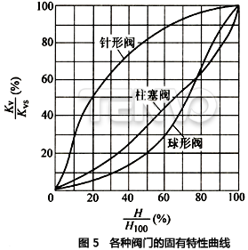 這些閥門(mén)主要用于兩位式調(diào)節(jié)。這時(shí)重要的不是特性曲線(xiàn)形式,而是穩(wěn)定性。各種閥門(mén)的固有特性曲線(xiàn)見(jiàn)圖5。